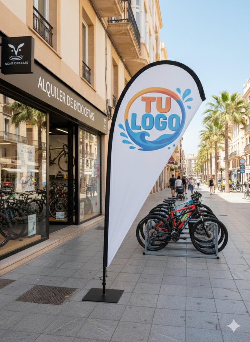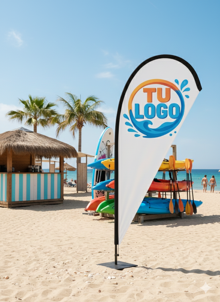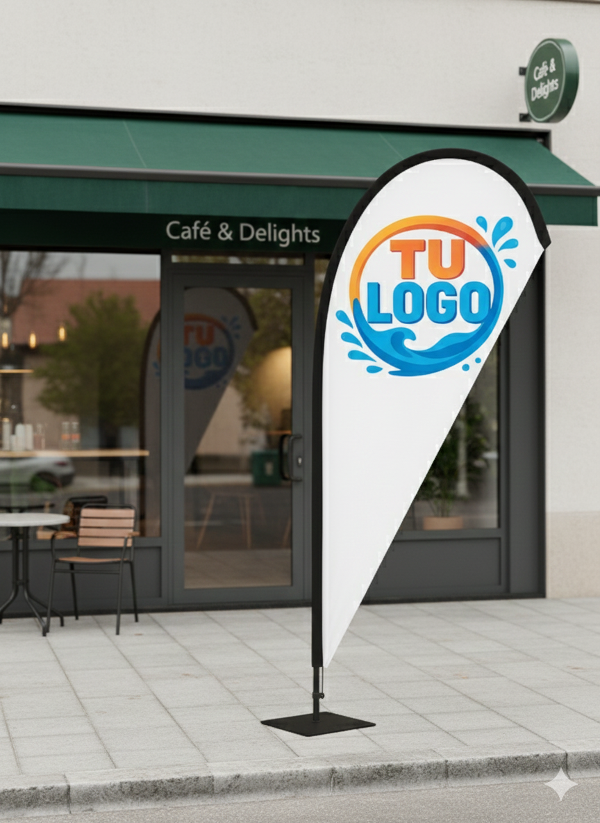 Los fly banners son ideales para exteriores, ferias, terrazas o eventos deportivos.
